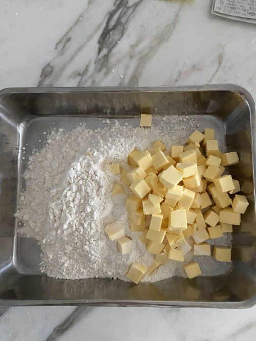 작업대 바닥에 버터가 많이 묻을 수 있으니 밀가루를 넉넉히 뿌리면서 하는걸 추천드려요. 버터가 녹으면 안되기 때문에 빨리 밀어주고 30분동안 냉장고에서 휴지시켜주는걸 지켜주는게 제일 중요한 것 같아요.