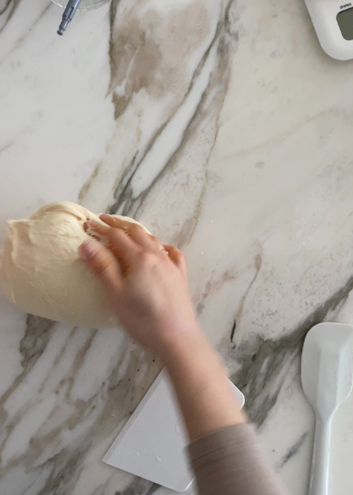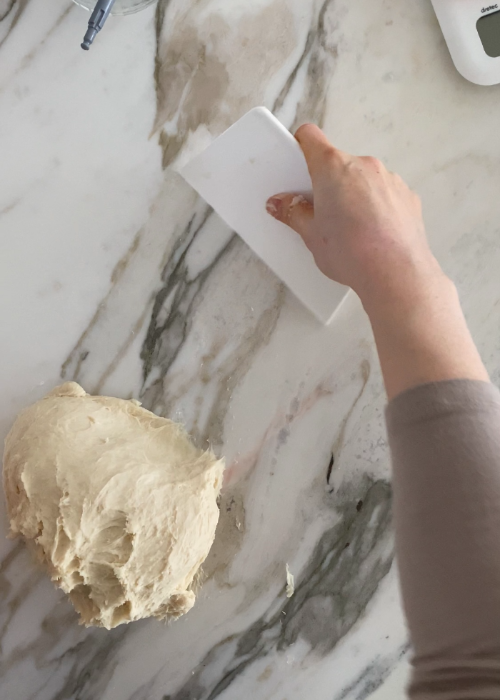 접고를 반죽을 돌려가며 반복 아직은 달라붙는게 많아서 중간 중간 대리석에 붙은 반죽 스크래퍼로 긁어주는데 이 과정 왠지 고수가 된 기분이 ㅎㅎ