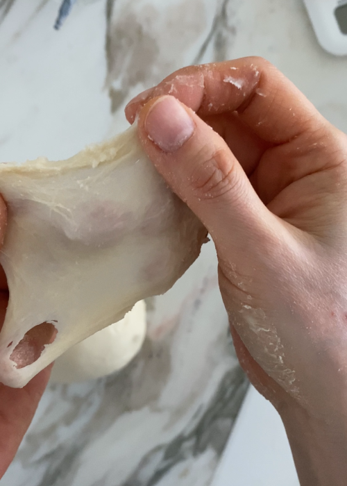 반죽을 펴보았을때 손가락이 비쳐 보일 정도로 잘 늘어나면 완성입니다.