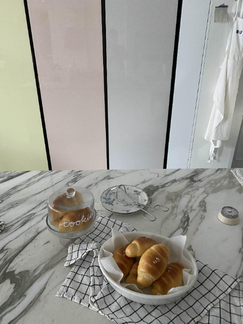 저는 아랫칸에 넣고 구웠고 중간에 한 번 위치를 바꾸어 주었어요. 빵 굽는 전용이 아니라 아쉬움도 있지먄 그래도 레인지랑 오븐 기능이 같이 있으면서도 예쁜 아이라 저는 만족하며 사용중이예요.